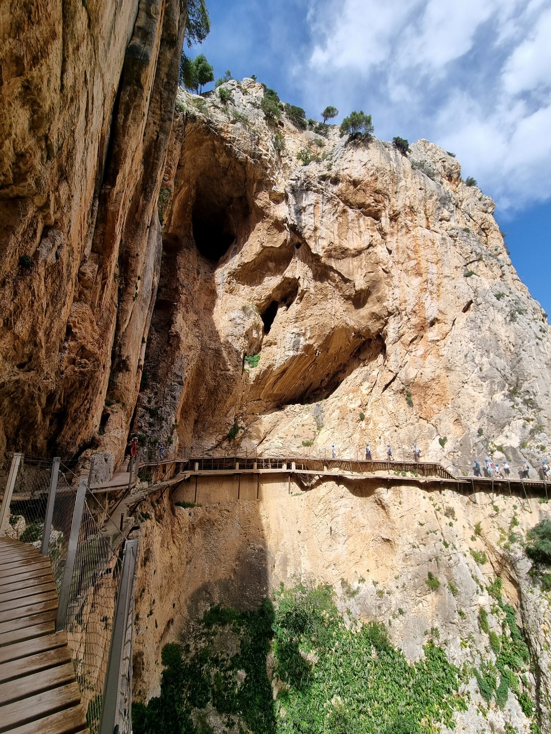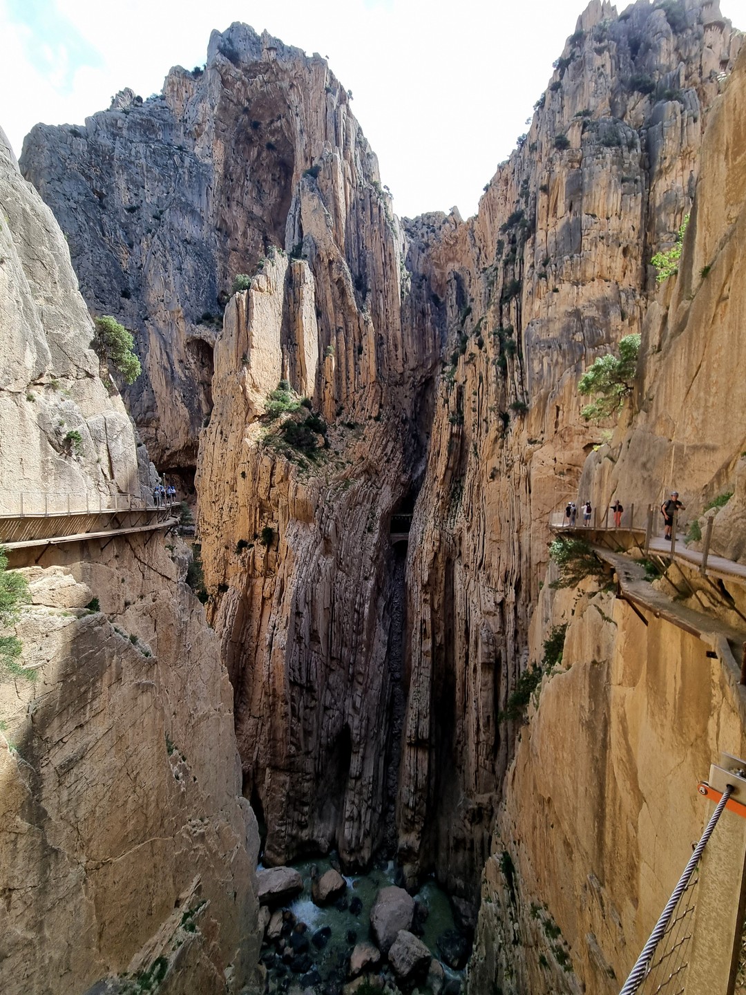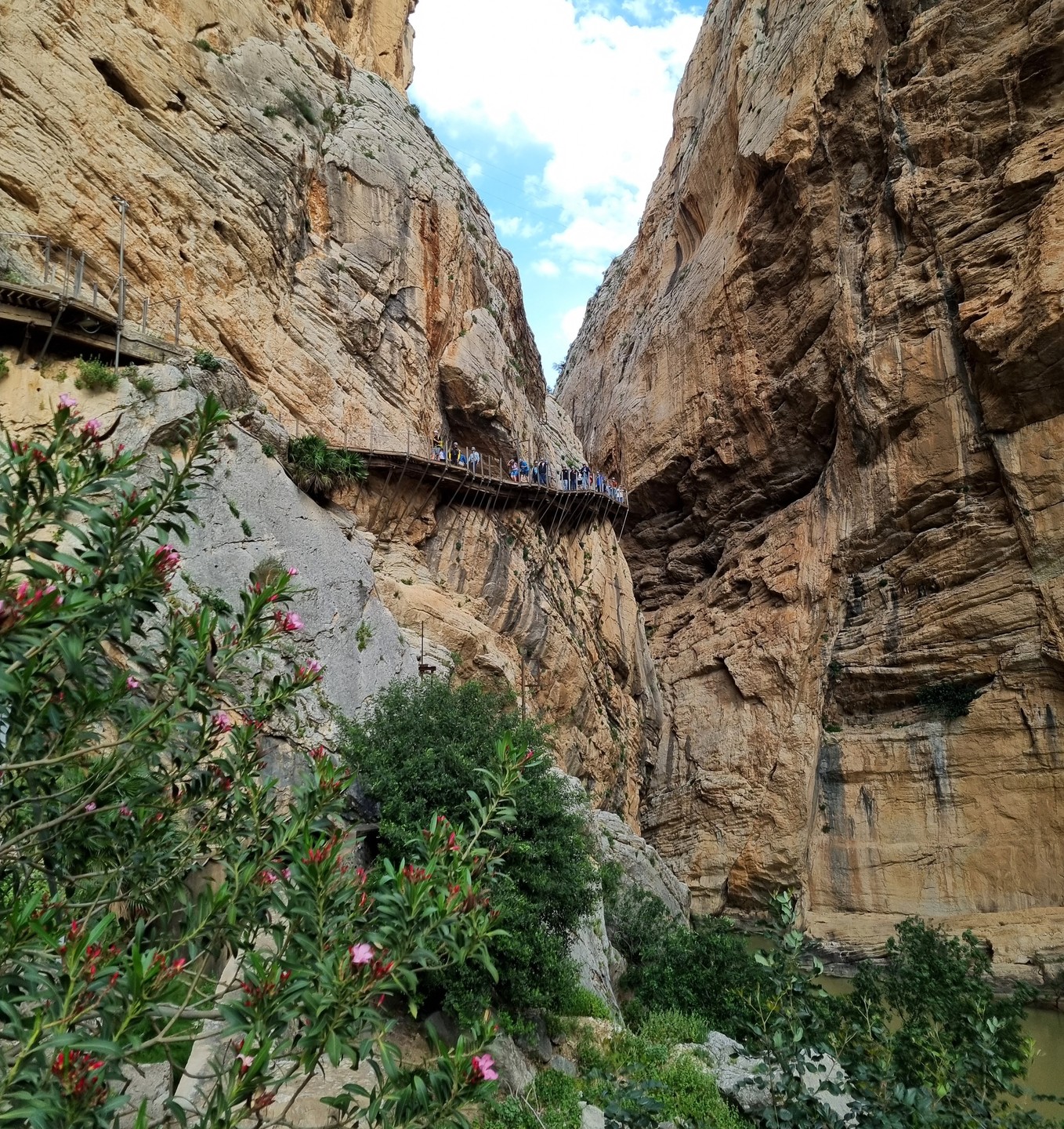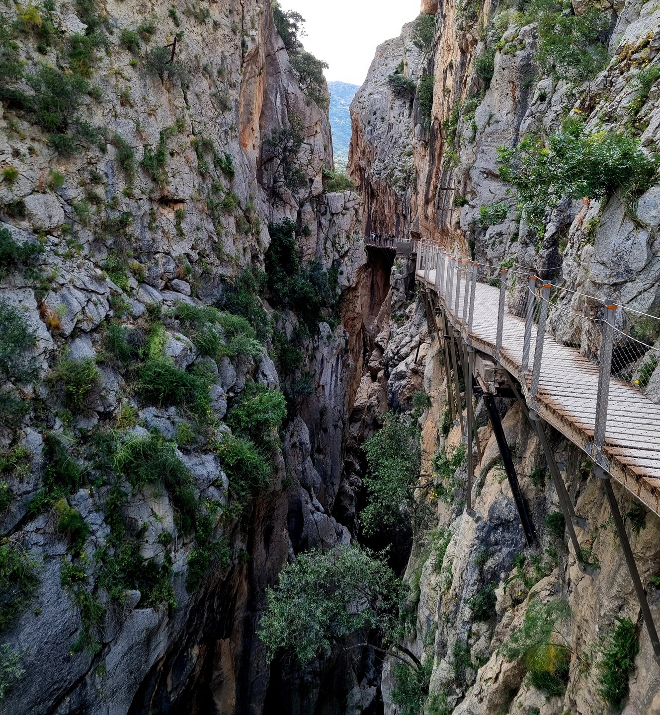 Caminito del Rey – Ścieżka Króla. Kiedyś przejście tylko dla odważnych (po wypadkach śmiertelnych oficjalnie zamknięte w latach 2000-2015). Teraz niedzielna wycieczka piknikowa. W roku 2014 trasa w wąwozie została zbudowana na nowo. Zawieszono zabezpieczone podesty odpowiednie dla turystyki masowej. Może taka kolej rzeczy. Większość turystów stanowią dzisiaj zorganizowane grupy z przewodnikami. W sezonie pewnie ciężko kupić bilety indywidualne bez sporego wyprzedzenia. Są oczywiście określone godziny wejścia, trzeba płacić za parking i shuttle busy. Można to zaakceptować jak się jest na lajtowym wyjeździe na przedłużony weekend w Andaluzji ;-). Najważniejsze, że zostały widoki, a przejście wysoko nad dnem wąskiego wąwozu wydało mi się całkiem atrakcyjne. No i zawsze to 8km spaceru + zaliczona atrakcja.